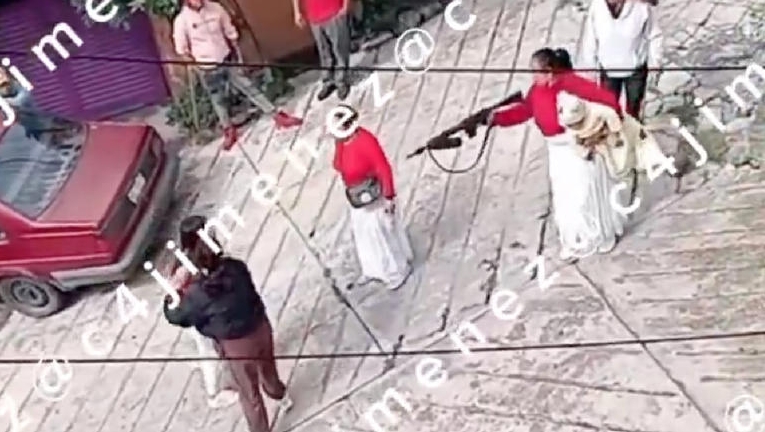 La grabación difundida por el periodista y conductor del programa de Telediario, C4 en Alerta, Carlos Jiménez, muestra a un grupo de vecinos discutiendo en la calle, y aunque el conflicto aún no se definía por violencia física, una mujer decidió apuntar su arma para intimidar a sus adversarios.