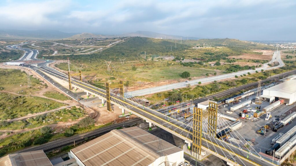 La nueva Vía Alterna parte desde la prolongación de la avenida Juárez hasta el Eje 122, donde se intervinieron 8.6 kilómetros incluyendo el puente vincular sobre las vías del tren y la nueva glorieta de mil 100 metros lineales, que incluyó una conexión con la prolongación de avenida Salk de más de 5 kilómetros y una glorieta para una mejor vialidad, lo que generará mayor plusvalía a los hogares y a las empresas cercanas a la construcción.