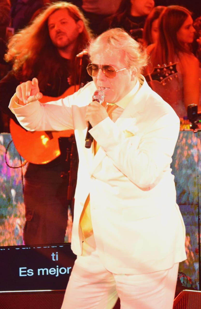Vestido con un traje blanco impecable, el intérprete apareció en el escenario en medio de aplausos. Desde el primer instante, se entregó con su característico carisma, recordando por qué ha sido uno de los artistas más importantes de la balada romántica en Latinoamérica durante más de tres décadas.