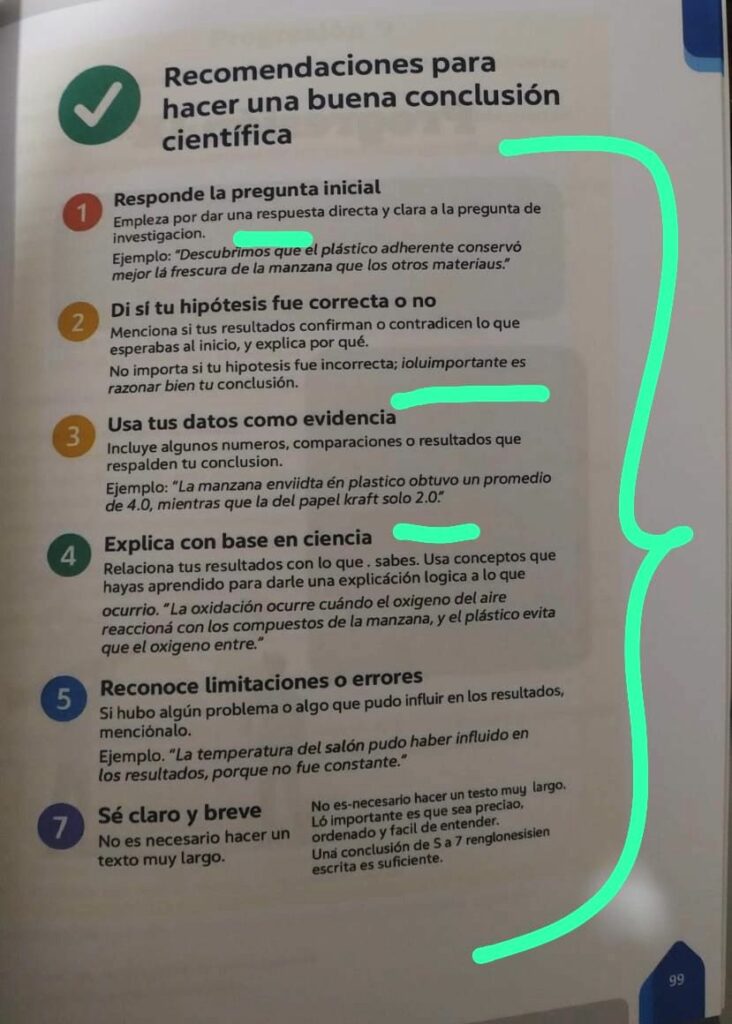 El activista abundó que, en el Curriculum Ampliado, hay fallos notorios en las páginas 11, 13, 86 y 99, en el libro de Humanidades, página 171, una imagen está sobrepuesta al texto. Y en el libro “Taller de Ciencias II”, página 25, se encuentra lo siguiente —copiado literalmente—: “Organiza bien tus datos, utiliza tablas claras con headeras, con vinidades o definidas acunienas, Ada labeles, titulos, unnitudes 1 ugenda para sesenda r incrrotracion”, al cual no se le entiende nada.