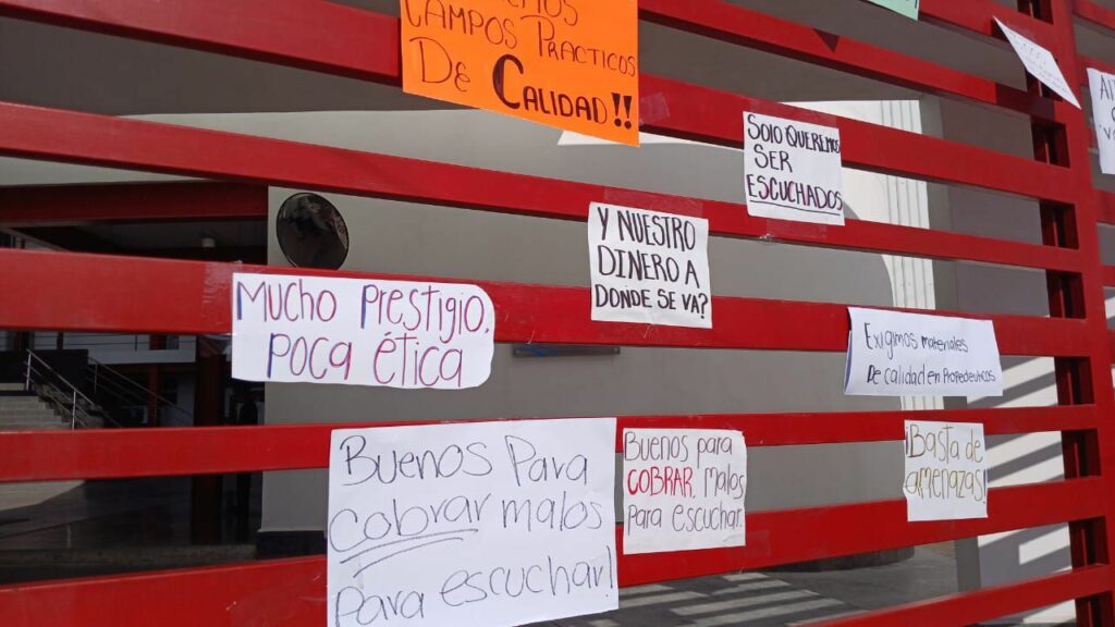 Los estudiantes exigen el respeto a la libertad de expresión, denunciando que quienes han alzado la voz han sido amenazados con bajas, retrasos en titulación o represalias académicas. También señalaron que a los docentes se les ha pedido no reprobar alumnos, lo que consideran un intento de manipular estadísticas para aparentar estabilidad, afectando seriamente la calidad educativa “no queremos pagar por un título, queremos ganarlo con mérito. Esta no es una escuela para pasar por pagar”.
