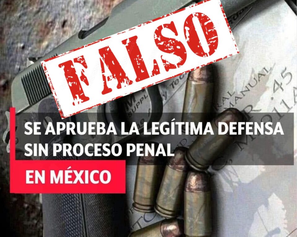 La versión que circula es engañosa: el Congreso de la Unión no ha aprobado ninguna reforma en 2025 sobre legítima defensa. La figura ya existe en la ley, pero siempre bajo criterios de proporcionalidad, necesidad y legalidad.