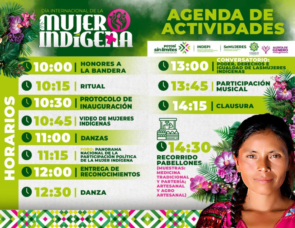 El Instituto de Desarrollo Humano y Social de los Pueblos y Comunidades Indígenas (Indepi), en coordinación con el Gobierno Municipal de Coxcatlán y la Secretaría de las Mujeres e Igualdad Sustantiva (Semujeres), realizará un evento conmemorativo por el Día Internacional de la Mujer Indígena el viernes a partir de las 10:00 horas.