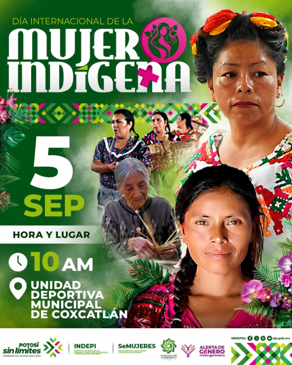 El Instituto de Desarrollo Humano y Social de los Pueblos y Comunidades Indígenas (Indepi), en coordinación con el Gobierno Municipal de Coxcatlán y la Secretaría de las Mujeres e Igualdad Sustantiva (Semujeres), realizará un evento conmemorativo por el Día Internacional de la Mujer Indígena el viernes a partir de las 10:00 horas.