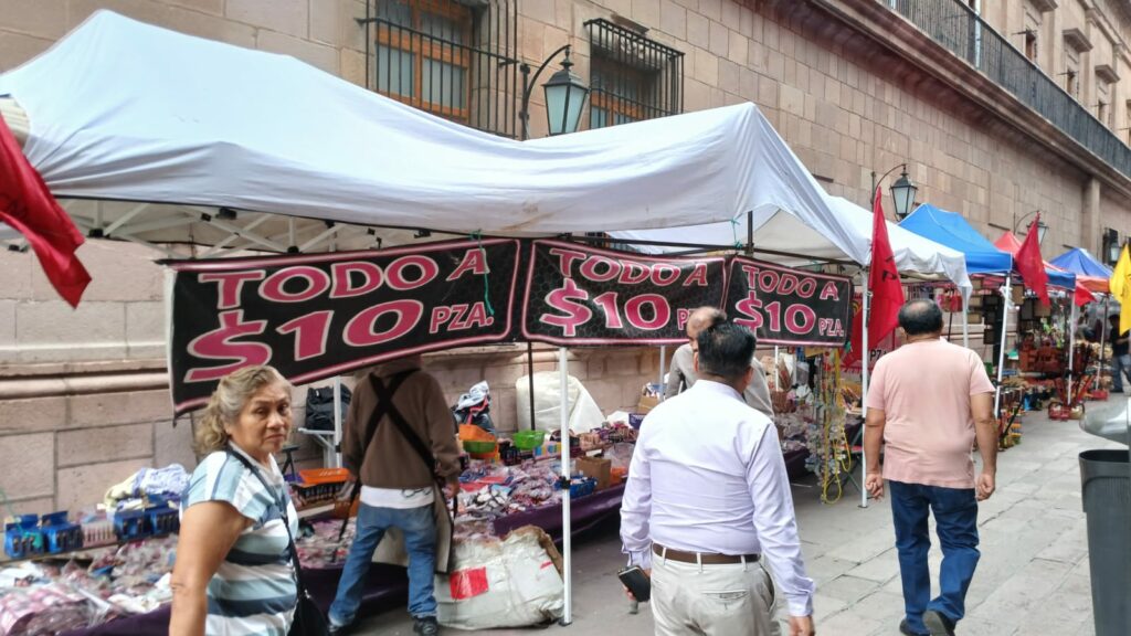 En el tianguis instalado venden desde cuadros, mochilas, ropa, accesorios y hasta alimentos, lo cual aprovechan las personas que pasan por el Centro Histórico para consumir o comprar algún artículo.