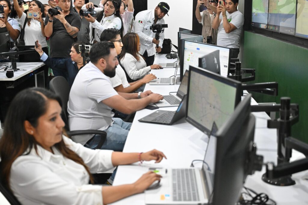 Posteriormente, el Gobernador Ricardo Gallardo inauguró las instalaciones del Centro de Monitoreo de la Red Metro, equipado con pantallas de última generación que permitirá supervisar en tiempo real cada unidad y garantizar la seguridad de las y los usuarios en todo momento, y estableciendo contacto directo con las unidades, incluyendo botón de pánico conectado al C4 para cualquier eventualidad.