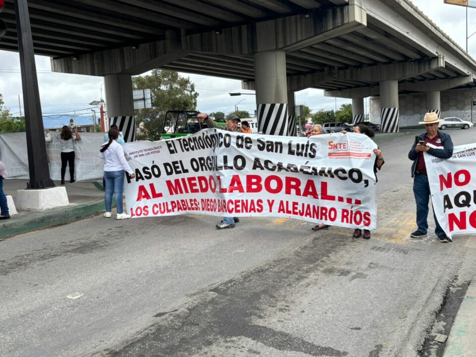 Trabajadores del Instituto Tecnológico de San Luis Potosí (ITSLP), se manifestaron dentro y fuera de las instalaciones de la institución, bloquearon la carretera a Rioverde, para exigir la destitución del director, José Diego Bárcenas Torres, a quien acusan de múltiples irregularidades administrativas y laborales,
