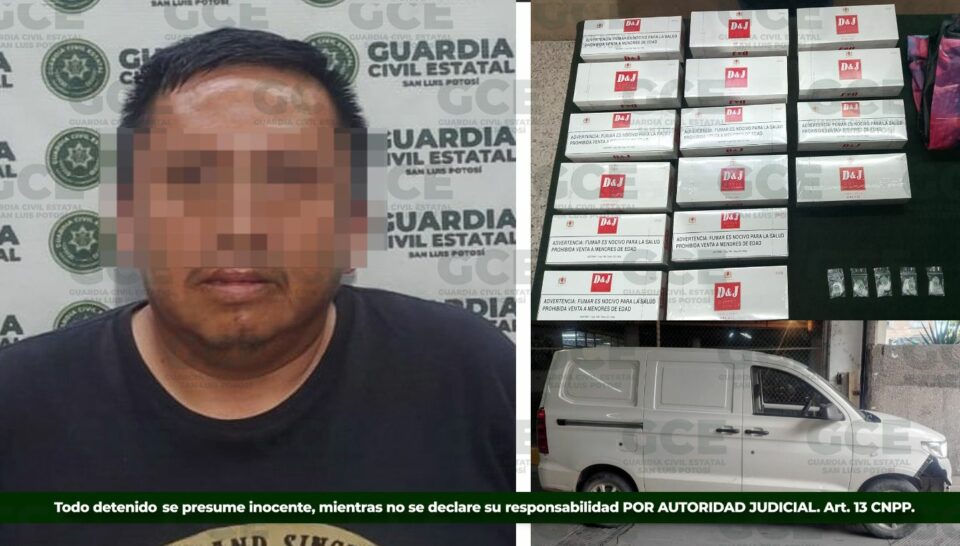 El presunto, vinculado a actividades que dañan el bienestar de la comunidad, fue asegurado con 16 cajetillas de cigarros apócrifos procedentes de China, que incumplían los requerimientos exigidos por COEPRIS, así como cinco dosis de “cristal”.