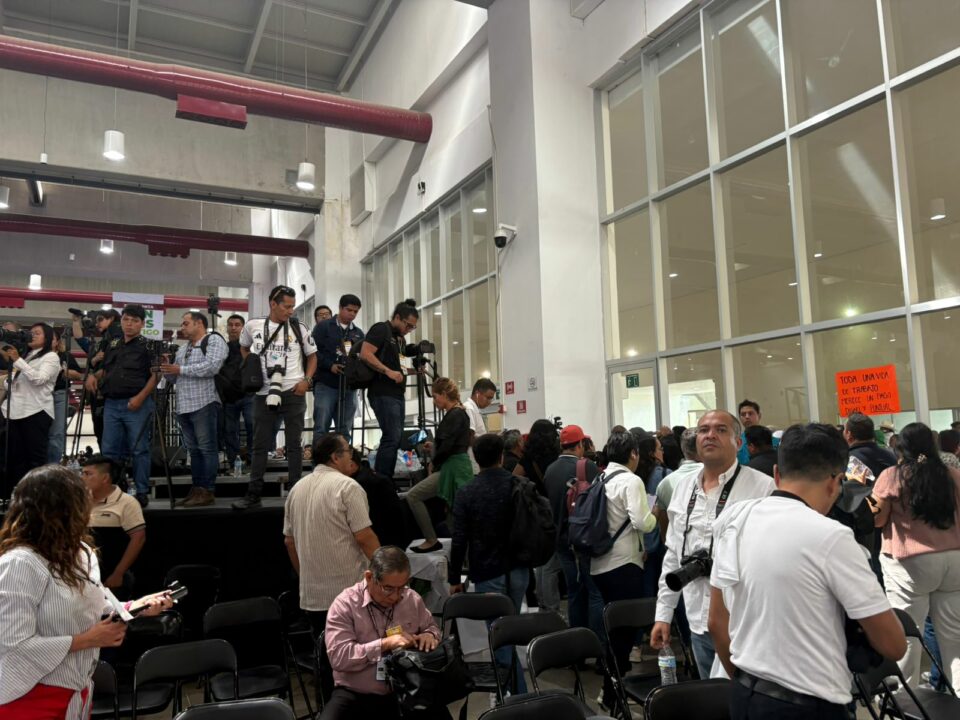 Pese a que el evento del informe de la presidenta Claudia Sheinbaum, en el Centro de Negocios, ya había concluido y toda la gente estaba saliendo, el supuesto personal de la Delegación del Bienestar no permitía la salida de los periodistas, a quienes mantuvieron encerrados en una especie de corral.