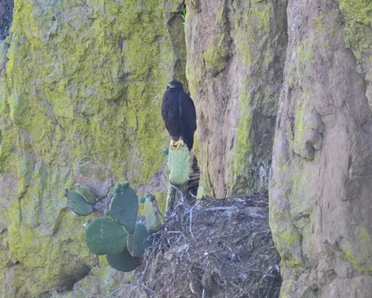 “Un ejemplar, un aguilucho que tenía ocho semanas de nacido se posó en un nopal que estaba a un lado del nido. La fotografía la captó mi compañero, el biólogo José Ojeda y ahí quedó plasmada para la posteridad y para el registro biológico de que efectivamente un águila real se puede posar en un nopal”, afirmó.
