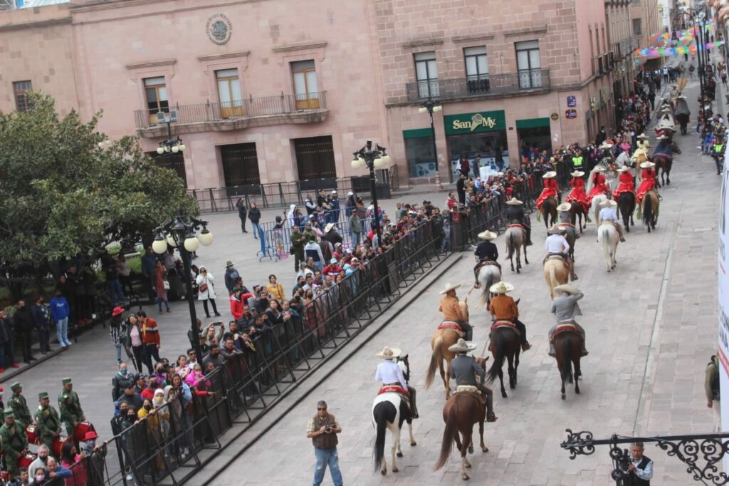 De manera extraoficial se maneja que el mandatario será quien encabece el desfile desde su punto de inicio y lo hará a caballo acompañado por sus cercanos colaboradores también montados; descontará frente al Palacio para ocupar su lugar en el palco.