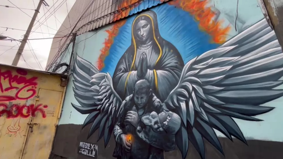 La obra, realizada por el artista urbano Snoke en colaboración con otros creadores, captura la esencia del heroísmo de Doña Alicia, conocida popularmente como la “abuelita heroína”. El mural muestra a la mujer con alas de ángel, arropada por una imagen de la Virgen de Guadalupe, mientras sostiene en sus brazos a su nieta. Esta imagen no solo simboliza la protección, sino que también eleva su sacrificio a un acto de devoción y amor.