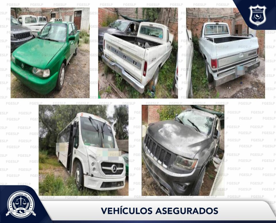 La Fiscalía General del Estado de San Luis Potosí (FGESLP), a través de una orden de cateo en Mexquitic de Carmona, aseguró diversos vehículos relacionados con el delito de robo.