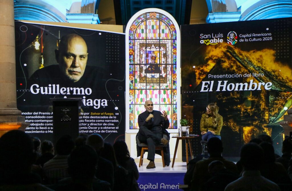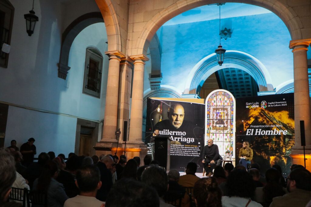 El Gobierno de la Capital en el marco de San Luis Potosí Capital Americana de la Cultura en colaboración con Gandhi, presentaron a Guillermo Arriaga (Ciudad de México, 1958), quien habló de su nueva novela “El Hombre”, la que se describe como una novela polifónica, narrada con maestría por seis voces en distintas épocas.