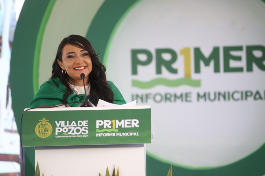 El Gobernador del Estado Ricardo Gallardo Cardona, reconoció el trabajo de la c de Villa de Pozos, María Teresa de Jesús Rivera Acevedo, quien rindió este martes su primer informe de resultados con obras y acciones a favor de las familias como nunca se habían visto, tras el abandono de la herencia maldita.