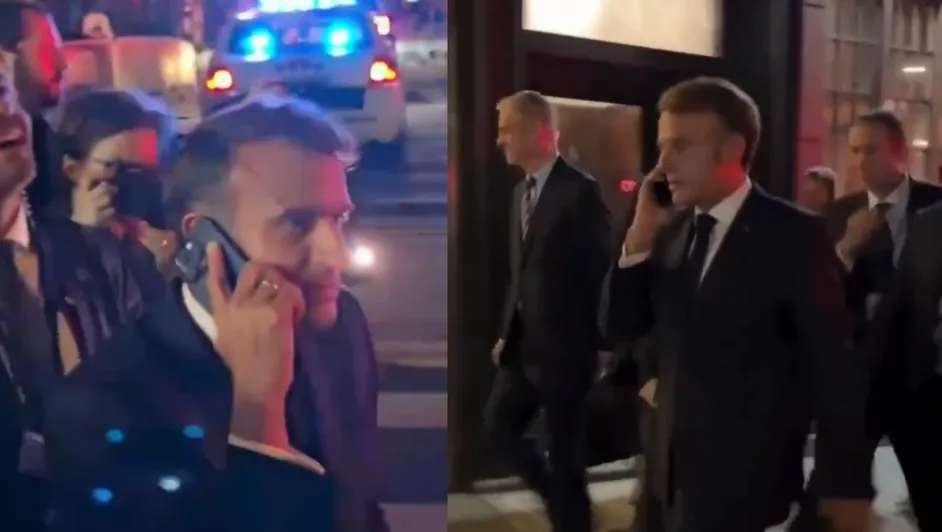 Ante la negativa del agente, con quien bromeó, Macron llamó por teléfono a su homólogo estadunidense: “¿Cómo estás? ¿Adivina qué? Estoy esperando en la calle porque todo está bloqueado por ti”, se escucha en las imágenes.