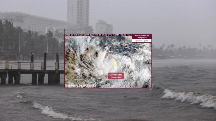 El huracán Narda continúa intensificándose en el océano Pacífico y, según el reporte más reciente del Servicio Meteorológico Nacional (SMN), se mantiene como ciclón categoría 2 en la escala Saffir-Simpson.