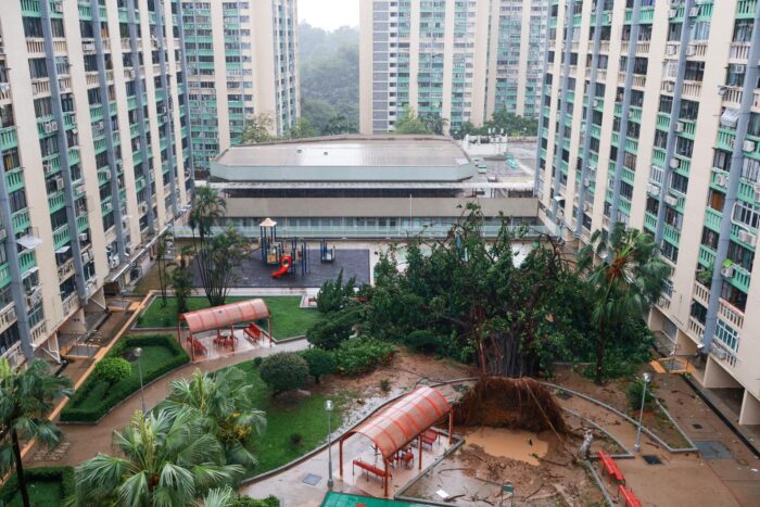 En Hong Kong, donde enormes olas se abatieron sobre zonas del litoral oriental y meridional del centro financiero asiático, algunas carreteras y propiedades residenciales quedaron sumergidas.