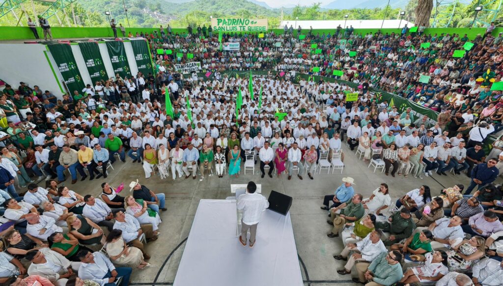 Ante miles de familias reunidas en la Unidad Deportiva de Tamazunchale (Udeta), líderes ganaderos, cañeros, presidentes municipales, funcionarios estatales y legisladores, el Gobernador sostuvo que los pueblos de la Huasteca han demostrado su valía y que su gobierno no distingue colores ni partidos..