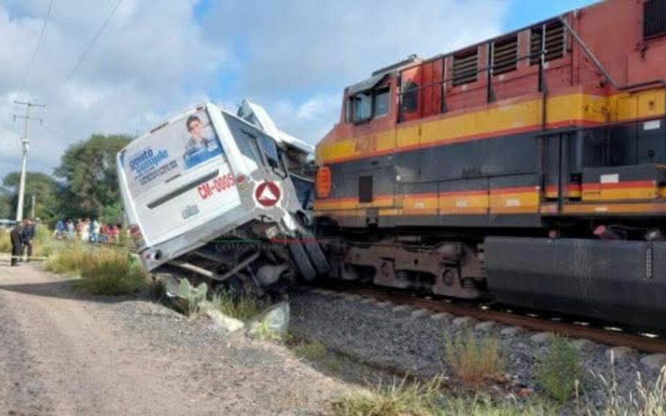Choque entre tren y autobús de pasajeros deja cinco muertos en Guanajuato