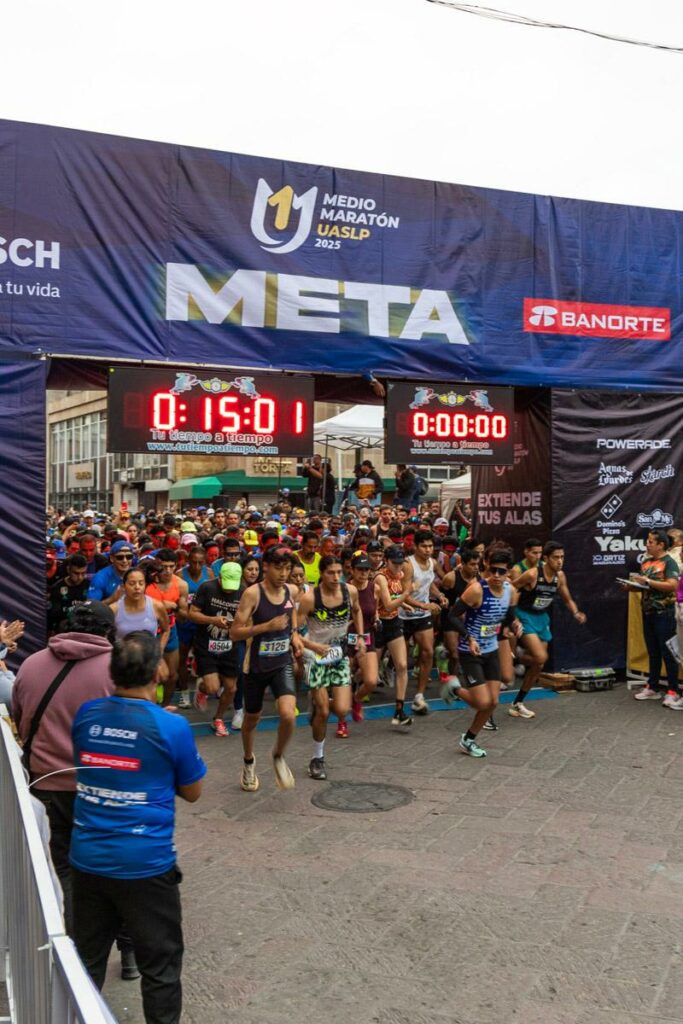 A las 6:45 horas, el rector de la UASLP, Alejandro Zermeño Guerra dio el chicharrazo inicial, que marcó el arranque de las distancias de 21, 10 y 5 kilómetros, con atletas que partieron frente al histórico Edificio Central.
