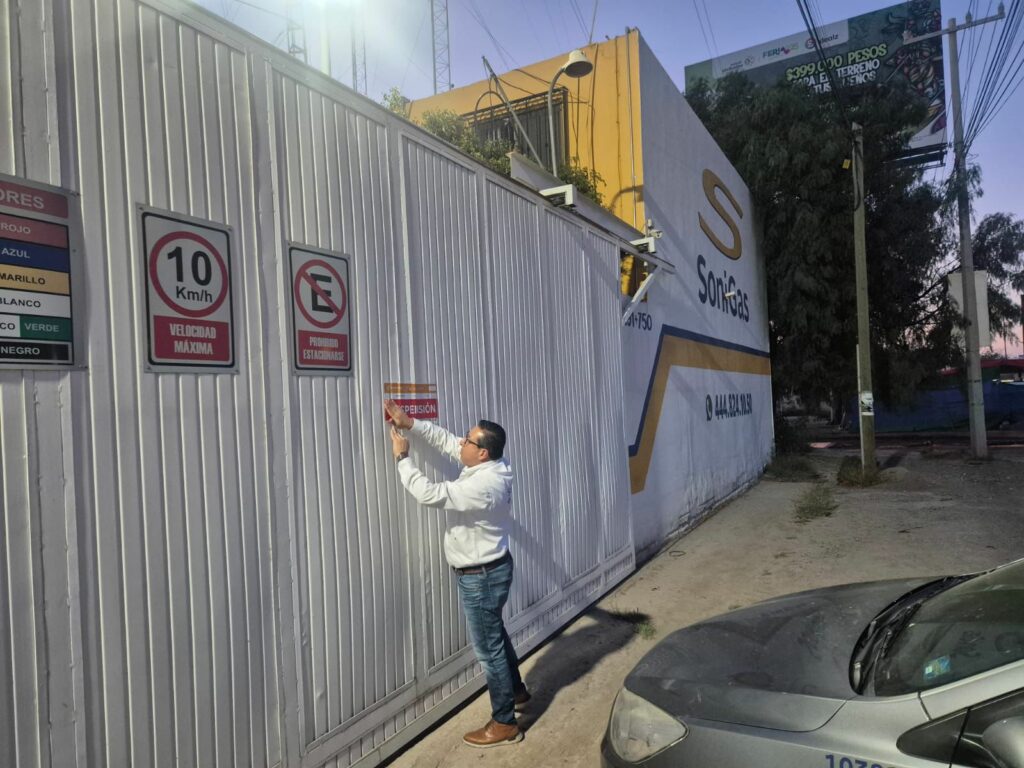 La Dirección de Comercio del Ayuntamiento de San Luis Potosí cerró el establecimiento de la empresa “SoniGas” en cumplimiento del reglamento municipal.