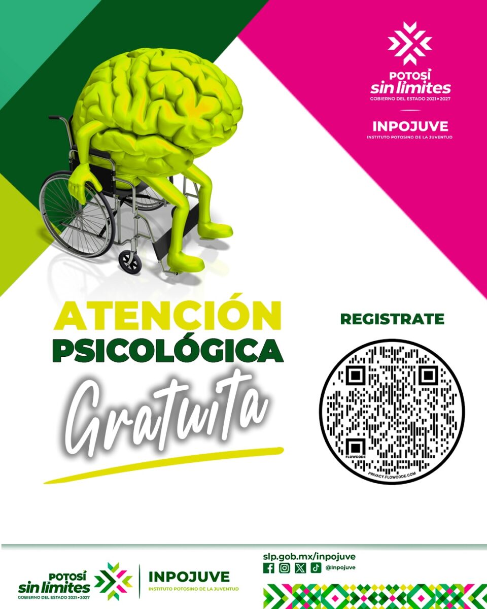 El Instituto Potosino de la Juventud (Inpojuve) ofrece atención psicológica gratuita a jóvenes de 12 a 29 años. Actualmente, el servicio cuenta con seis psicólogos activos que atienden de lunes a viernes en un horario de 9:00 a 19:00 horas, con registro directo en las instalaciones de la dependencia.