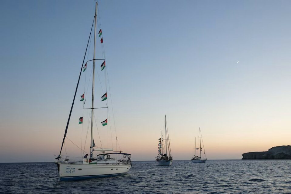 El viaje de la flotilla, compuesta por más de 40 barcos, fue transmitida a través de redes sociales, en la que se pudo constatar el momento en el que les piden que se detengan, alcen las manos y apaguen los motores.