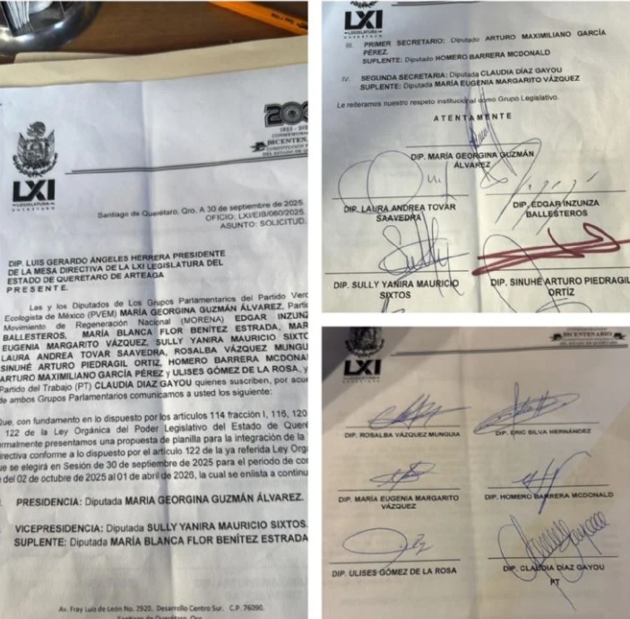 Proceso tiene copia de un documento fechado el 30 de septiembre, dirigido al presidente del Congreso Gerardo Ángeles Herrera, donde la mayoría de los 13 legisladores de los 25 que integran el Poder Legislativo, manifestaron el respaldo a María Georgina Guzmán Álvarez para encabezar el Poder Legislativo durante los próximos 6 meses.