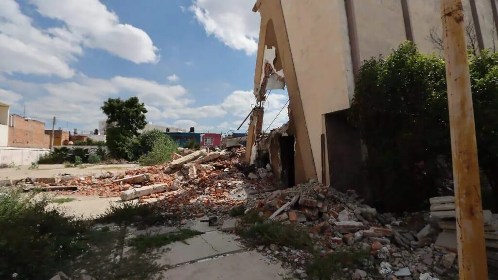 La autoridad municipal puso como ejemplo reciente un predio ubicado en la colonia Alamitos, donde una antigua propiedad del sindicato electricista quedó a medio demoler y ahora representa un riesgo de colapso.