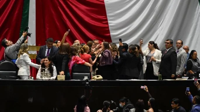 Ante ello, la presidenta de la Mesa Directiva de la Cámara de Diputados, Kenia López Rabadán, pidió dos minutos de silencio por separado, lo que provocó una serie de empujones y gritos en la Mesa Directiva por unos minutos entre legisladores morenistas y panistas.