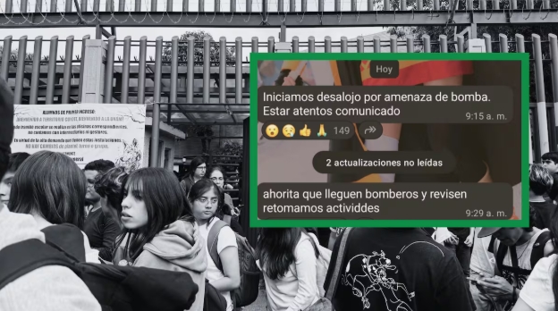 “Iniciamos desalojo por amenaza de bomba. Estar atentos comunicado. Ahorita que lleguen bomberos y revisen si retomamos actividades. Aproximadamente en una hora”, se lee en algunos mensajes filtrados en grupos de WhastApp del alumnado.
