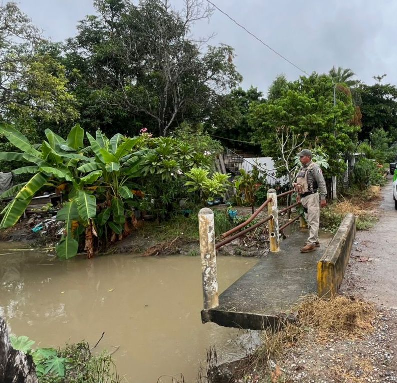 Durante el operativo, los oficiales realizaron recorridos por zonas bajas y ejidos, así como maniobras de desazolve y retiro de árboles caídos en colonias como La Estación, Santa Cruz y 20 de Noviembre, contribuyendo a restablecer el flujo del agua y disminuir los riesgos para la población.