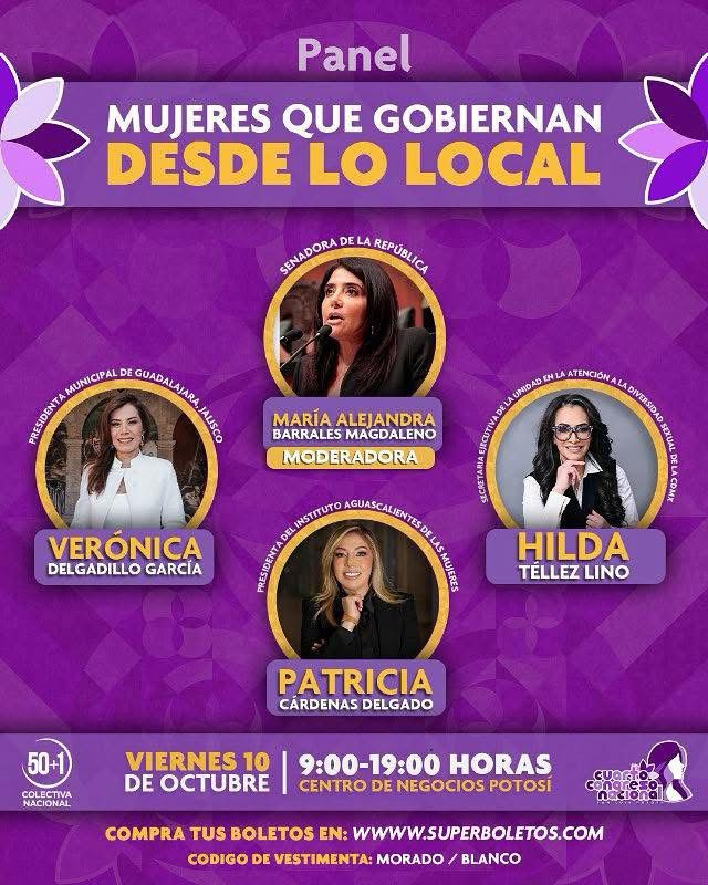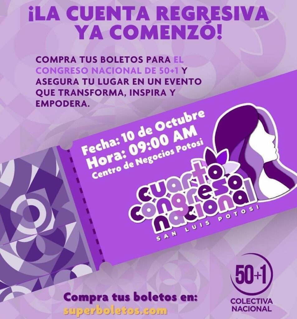En el Cuarto Congreso Nacional de 50+1 en San Luis Potosí, se reunirán voces que transforman los territorios desde la acción pública y la perspectiva de género, la cita es este 10 de octubre en el Centro de negocios Potosí de 9 a 19 horas.