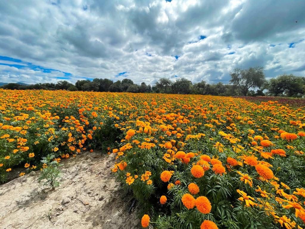 • Semillas entregadas anteriormente por el Ayuntamiento municipal se transforman en hectáreas de flor para la temporada de Día de Muertos