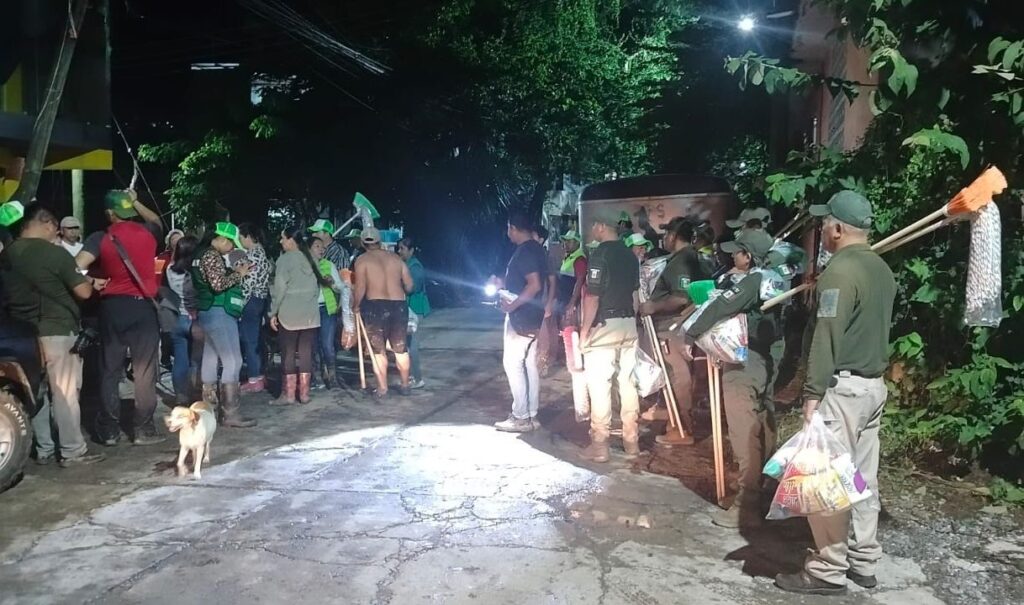 De igual forma, se reportó que en Barrio del Carmen, Barrio de San Rafael, Los Naranjos y Colonia la Estrella pertenecientes al Municipio de Tamazunchale S.L.P., los cuerpos de seguridad, rescate y emergencias, además de empleados del H. Ayuntamiento realizaron la entrega de kits de limpieza y entrega de despensas a la población.