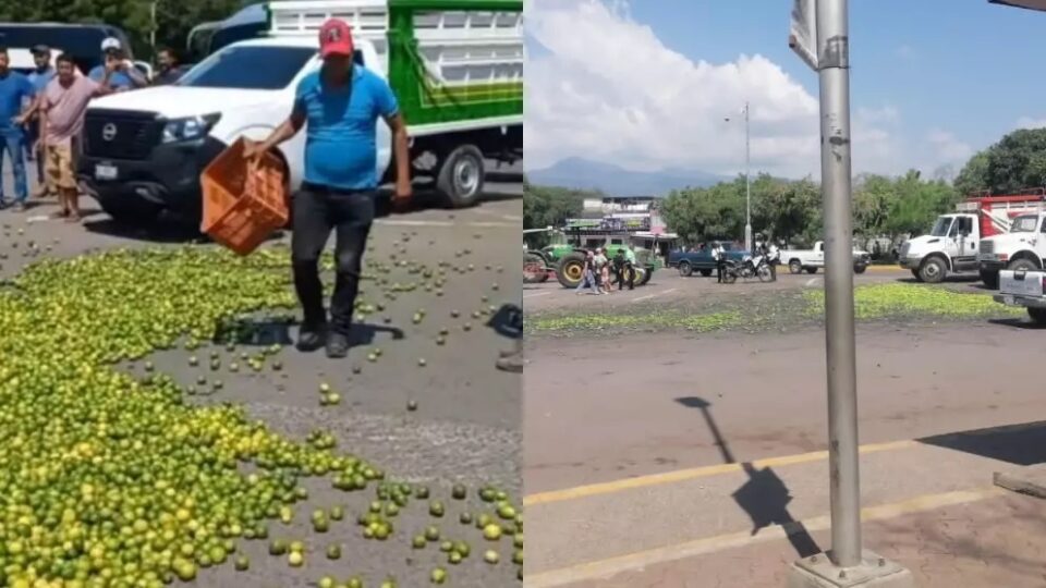 Con el grito de “¡Ahí ta pues, si lo quieren regalado, ahí está!”, limoneros de la región de Apatzingán, Michoacán, arrojaron más de dos toneladas del fruto a la vía pública como acto de protesta ante el bajo precio del limón en el mercado nacional.