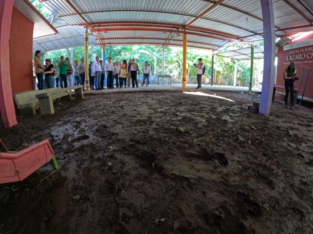 Durante las visitas a Axtla de Terrazas y Matlapa se verificaron las acciones de saneamiento en las escuelas, incluyendo la propuesta de reubicación de la primaria indígena “Mariano Jiménez”, asegurando la seguridad y continuidad del aprendizaje.