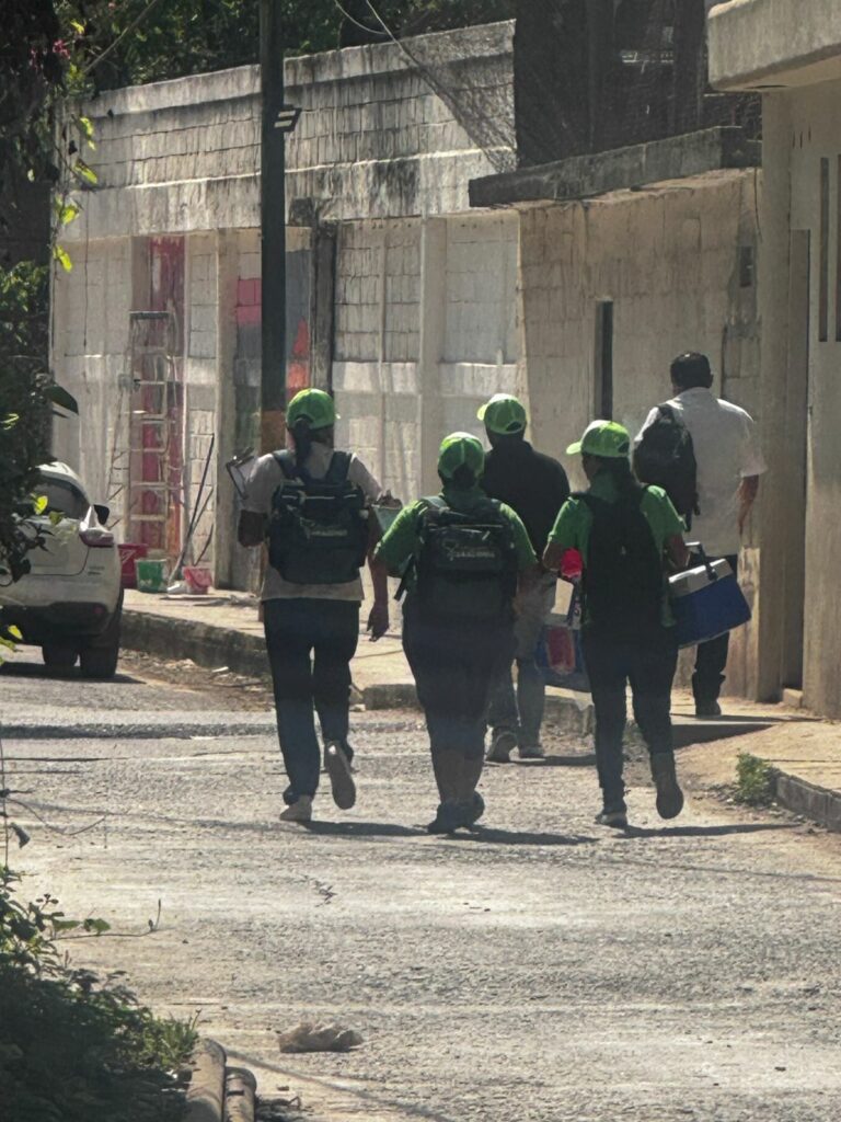 También acudió con personal de la Jurisdicción Sanitaria VII y de la Comisión Estatal para la Prevención de Riesgos Sanitarios (Coepris) a realizar un recorrido en la localidad General León Martínez de San Vicente Tancuayalab, la cual se encuentra aún con inundaciones y se están realizando acciones de limpieza, encalamiento, cloración y saneamiento básico.