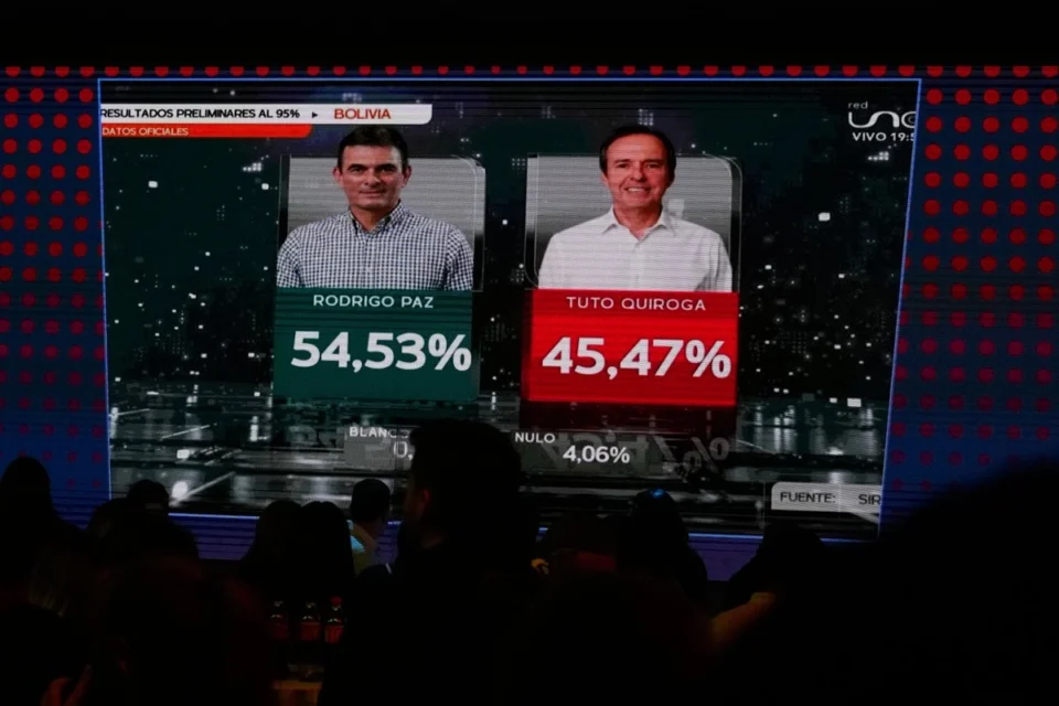 El conteo preliminar de votos en las elecciones presidenciales de este domingo en Bolivia mostraba una ventaja del senador de centro, Rodrigo Paz, al encabezar con 54 por ciento, respecto del ex mandatario conservador, Jorge Tuto Quiroga, que registraba 45 por ciento al computarse el 98 por ciento de las actas.