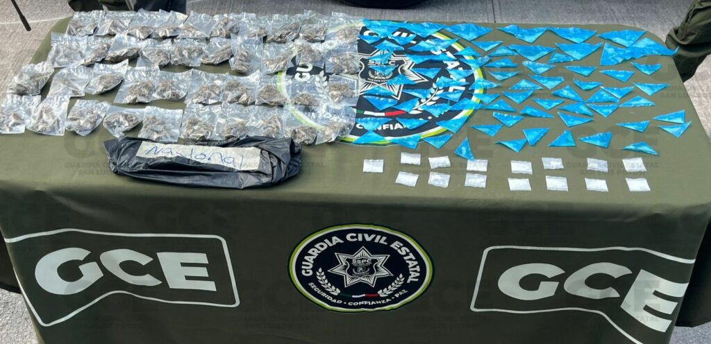 El presunto, que manejaba de manera peligrosa sobre la calle Adolfo López Mateos en la colonia Vista Hermosa, llevaba consigo 40 bolsas con una hierba seca en color verde con las características físicas similares a la marihuana; 75 bolsas con polvo blanco granulado con las características físicas similares a la droga conocida como “cristal” y 15 bolsas con piedra color blanco con las características físicas similares a la droga conocida como “crack”.