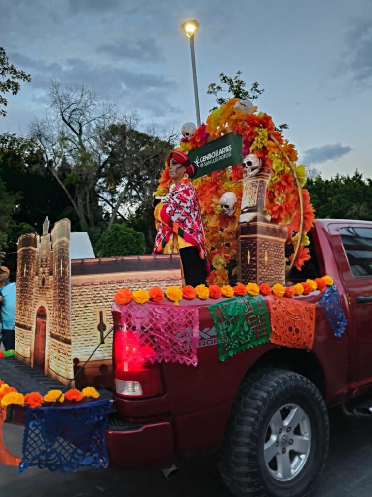 El ambiente de fiesta y orgullo potosino, así como los acordes de los sones huastecos acompañaron el paso de las catrinas, los carros alegóricos y las danzas típicas que evocaban la riqueza cultural del Día de Muertos. Niños, jóvenes y adultos participaron con entusiasmo, mostrando el amor por una tradición que, año con año, se renueva y se fortalece. Las familias aplaudieron cada comparsa, mientras los aromas del incienso y las flores de cempasúchil se mezclaron con la emoción de quienes presenciaron el desfile.