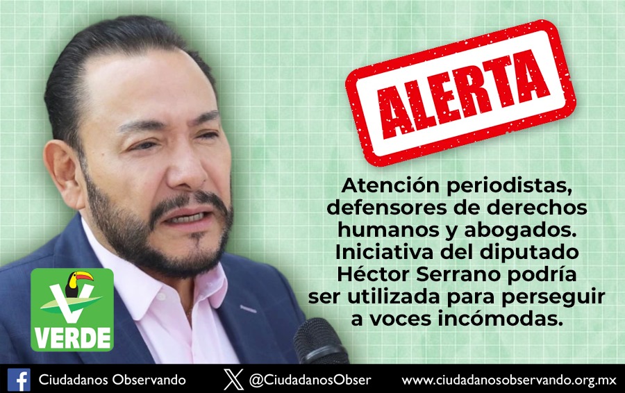 La organización Ciudadanos Observando alertó que, la circulación de vídeos modificados con inteligencia artificial fue el pretexto para que el diputado local del Partido Verde, Héctor Serrano Cortés, impulsará una iniciativa contra periodistas, medios de comunicación, activistas y cualquier voz crítica que el gobierno considere incómoda.