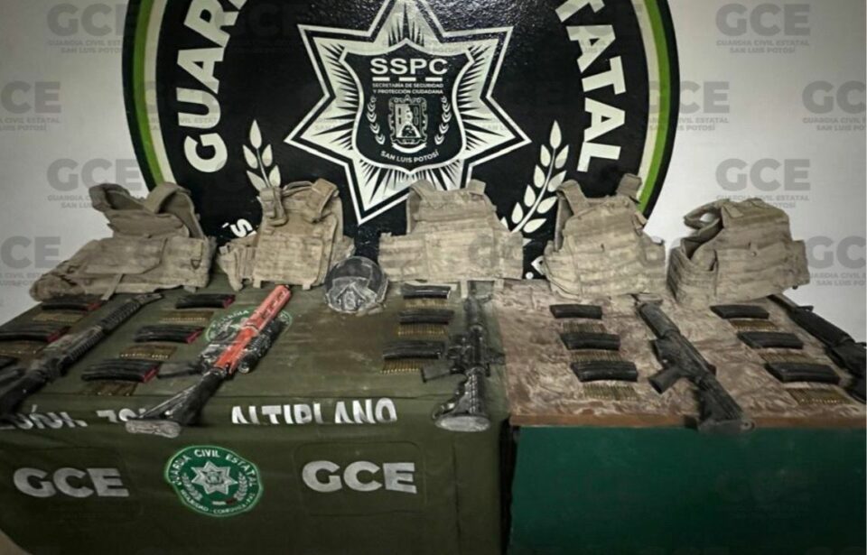 Dentro del inmueble ubicado en los límites con el estado de Nuevo León, señalado como campo de adiestramiento por parte de un grupo criminal, se encontraron cinco armas largas tipo carabina multi calibre, 15 cargadores metálicos, 225 cartuchos en diferentes, cinco chalecos y un casco tácticos.