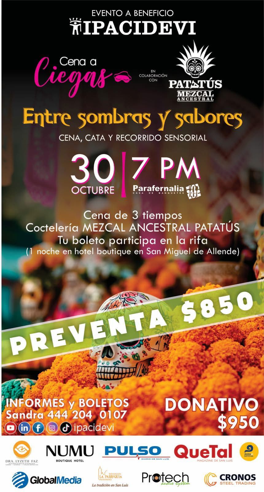 Potosínoticias te invita a ayudar, en la décima Cena a Ciegas, “Entre sombras y sabores” a beneficio de Ipacidevi (Instituto para Ciegos y Débiles Visuales).