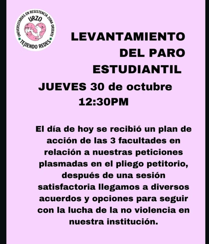 Al momento reportan que, únicamente la Facultad Ciencias continuaría con el paro, pues aún no logran un acuerdo sobre las demandas planteadas en el pliego petitorio.