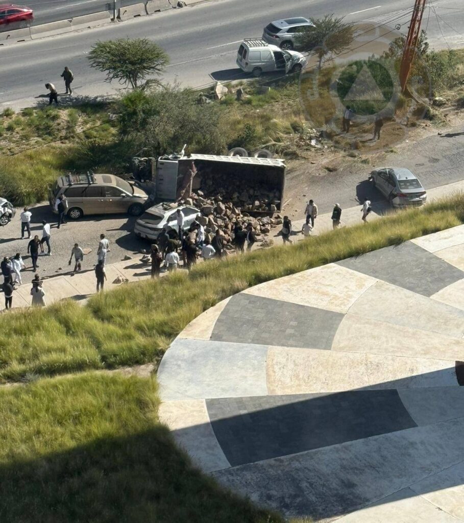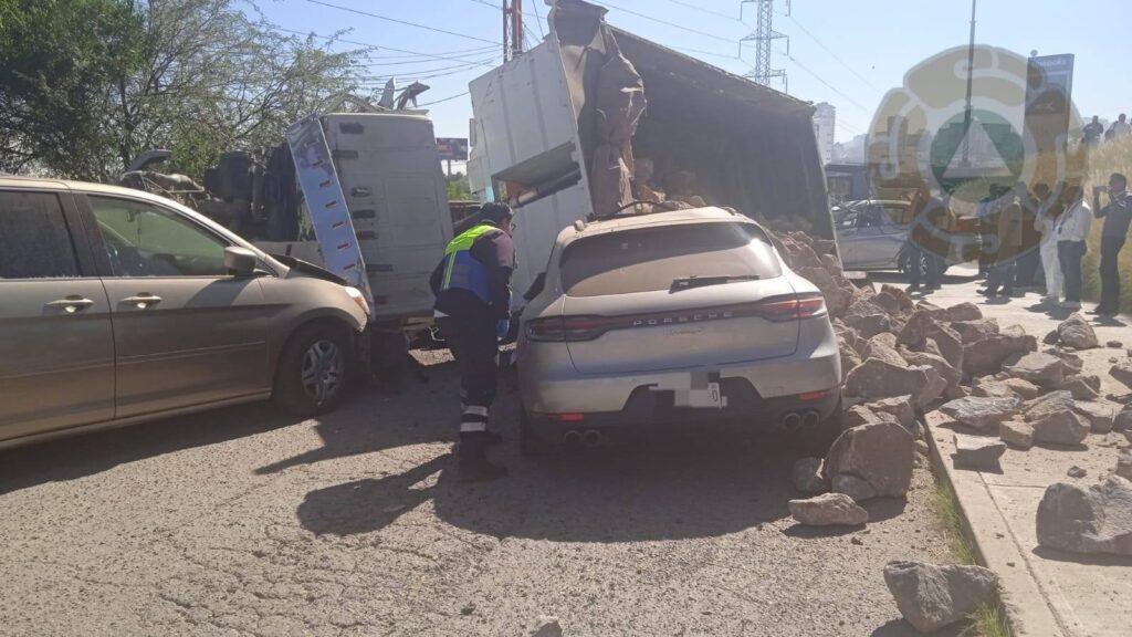 La mañana de este jueves se registró la volcadura de un camión de carga sobre la avenida Sierra Vista, frente a la Torre Tangente, en la zona poniente de la ciudad de San Luis Potosí.