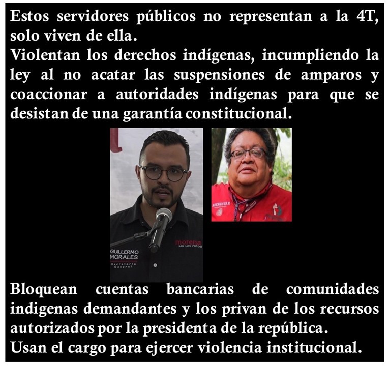 Cisneros Sánchez dijo que, encima de estos abusos sistemáticos, “los servidores públicos se hacen las víctimas, revictimizando a las verdaderas víctimas de la tragedia que ahora viven una doble tragedia, haber perdido ante un fenómeno natural y haber caído de la gracia proselitista de la Secretaría de Bienestar.