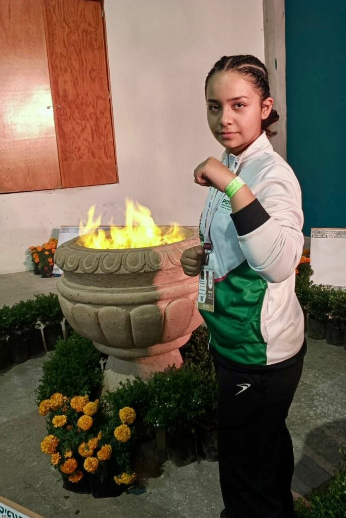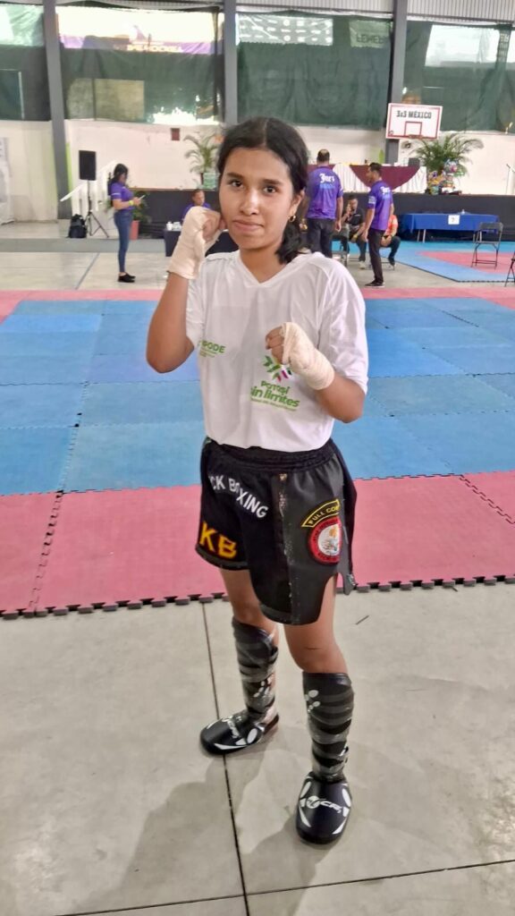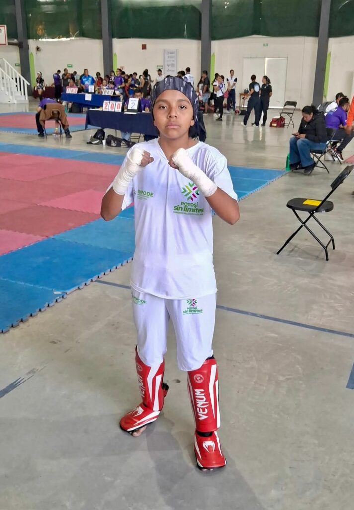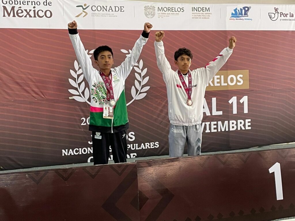 En tanto que Chris Ángel Cortés Hernández logró la medalla plateada en la categoría Combate Varonil principiante 10 a 12 años 35-40kg.