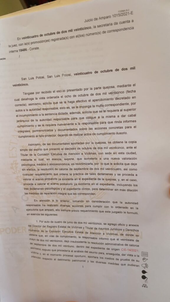 De igual forma, el juzgado advirtió que, si la CEEAV seguía sin cumplir con el fallo protector, podría aplicarse una segunda multa de más de 79 mil pesos e incluso iniciarse un procedimiento por desacato ante un tribunal colegiado o incluso a la Suprema Corte de Justicia de la Nación.